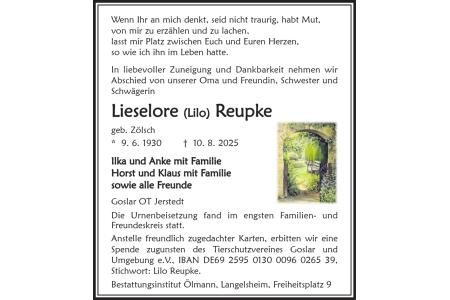 Todesanzeige Lieselore Reupke