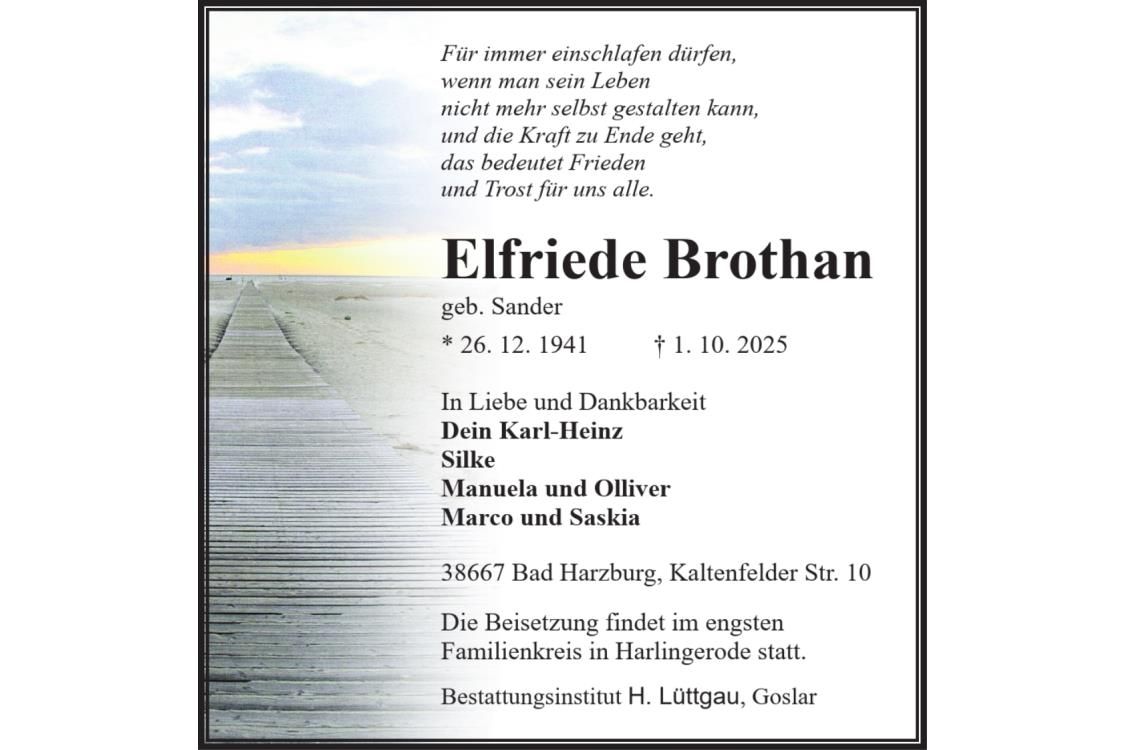 Traueranzeige Elfriede Brothan