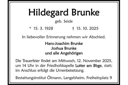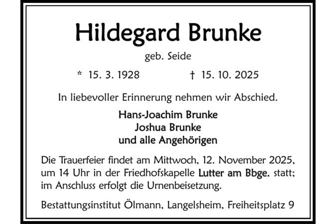 Traueranzeige Hildegard Brunke