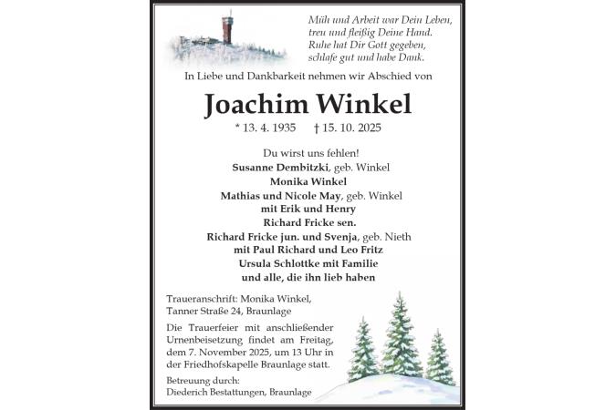 Todesanzeige Joachim Winkel