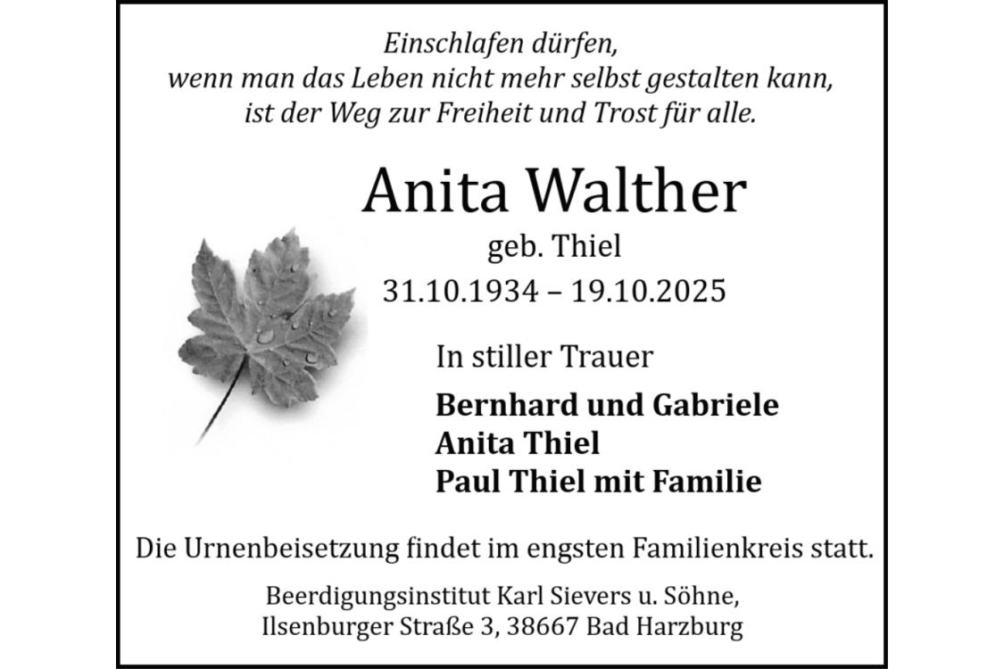 Traueranzeige Anita Walther