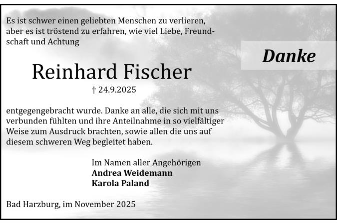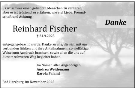 Trauerdanksagung Reinhard Fischer