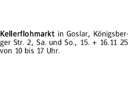 Kellerflohmarkt in Goslar, Königsberger Str. 2, Sa. und So., 15. + 16.11 25 von 10 bis 17 Uhr.