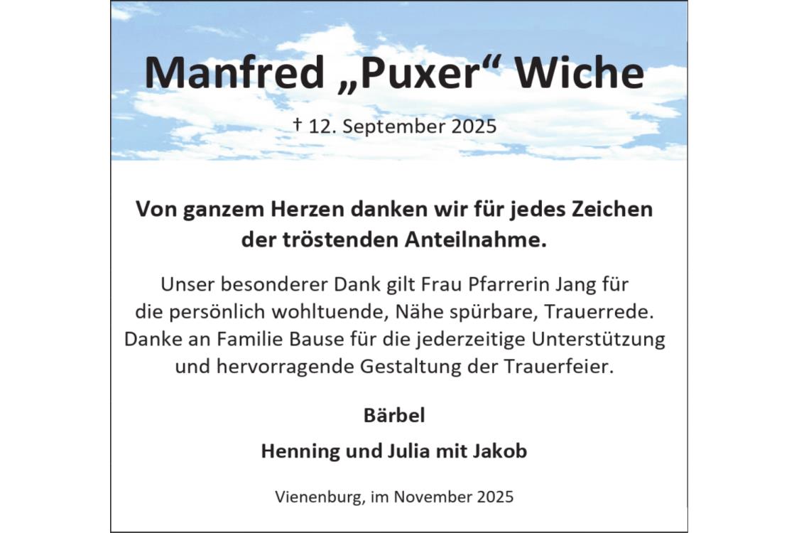 Trauerdanksagung Manfred Wiche