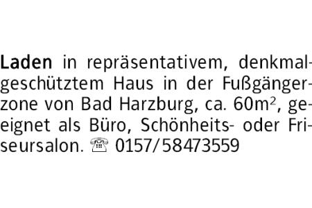 Laden in repräsentativem, denkmalgeschütztem Haus in der Fußgängerzone von Bad Harzburg, ca. 60m², geeignet als Büro, Schönheits- oder Friseursalon. 0157/58473559