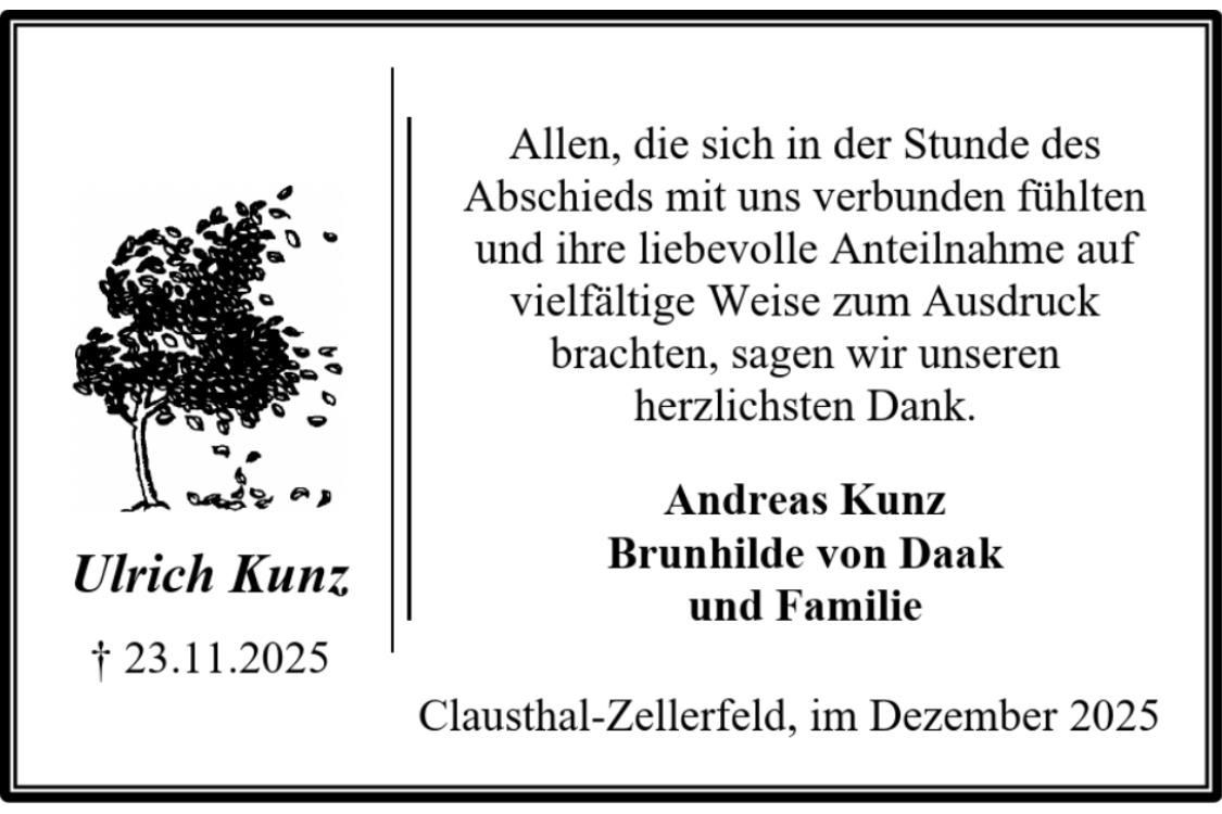 Trauerdanksagung Ulrich Kunz