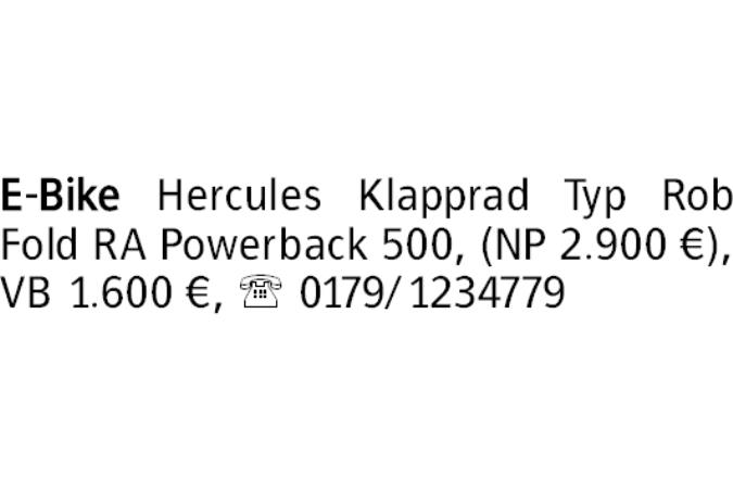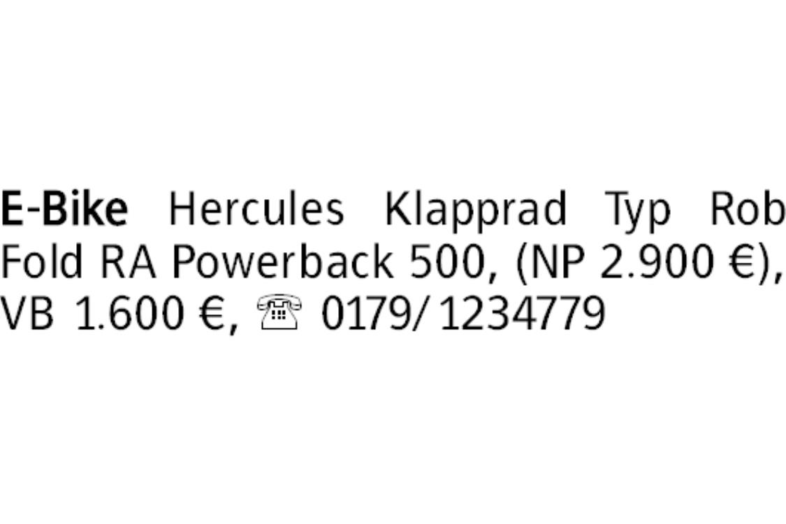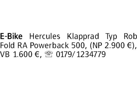 E-Bike Hercules Klapprad Typ Rob Fold RA Powerback 500, (NP 2.900 €), VB 1.600 €, 0179/1234779