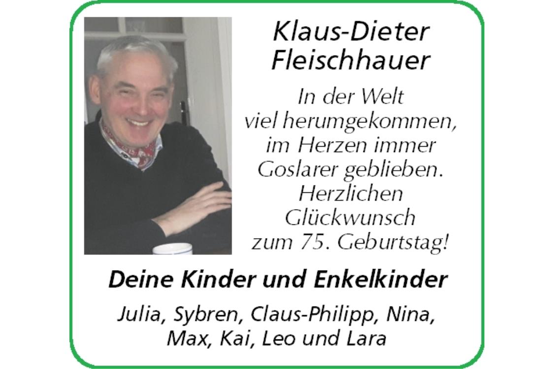 Klaus-Dieter Fleischhauer In der Weltviel herumgekommen,im Herzen immerGoslarer geblieben.HerzlichenGlückwunschzum 75. Geburtstag! Julia, Sybren, Claus-Philipp, Nina,Max, Kai, Leo und Lara Deine Kinder und Enkelkinder