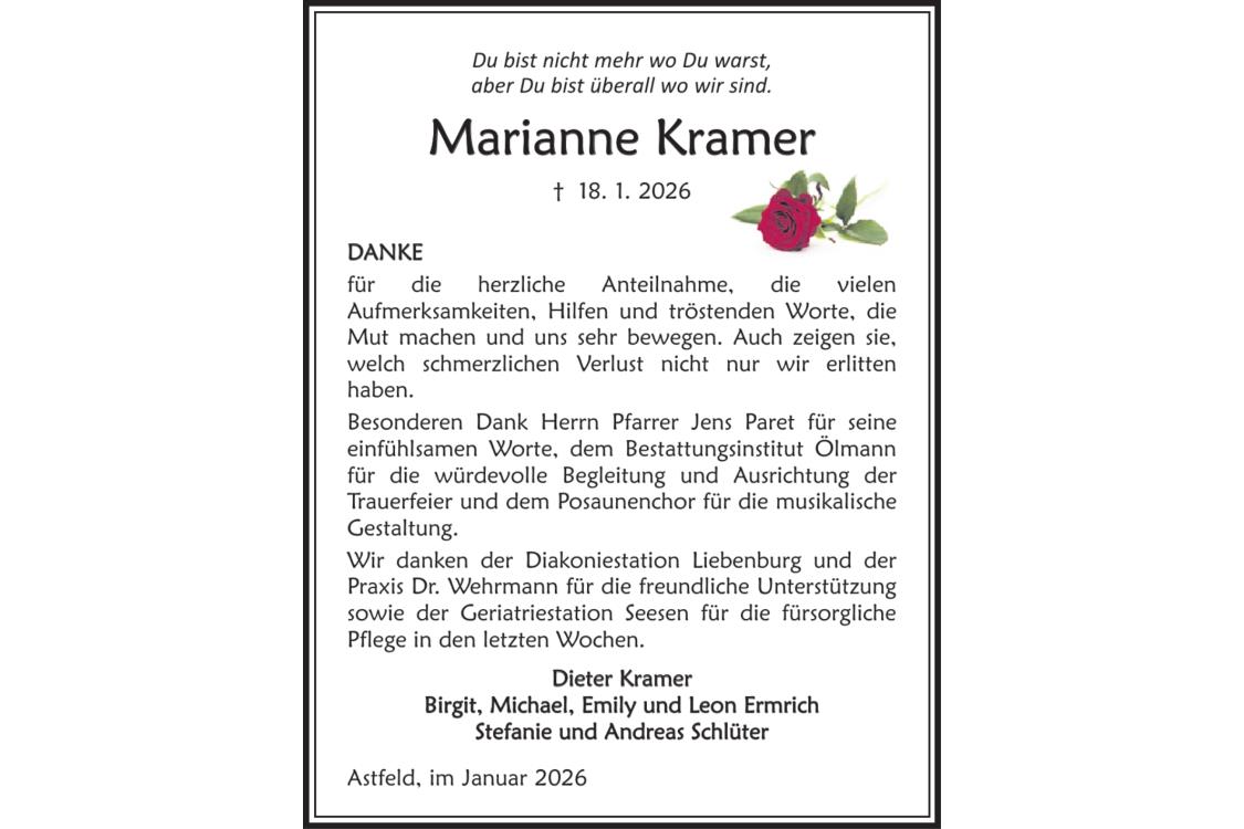 Trauerdanksagung Marianne Kramer