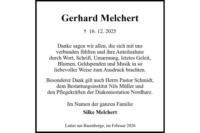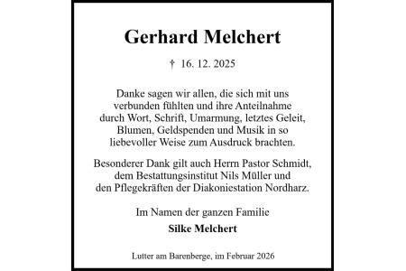 Trauerdanksagung Gerhard Melchert