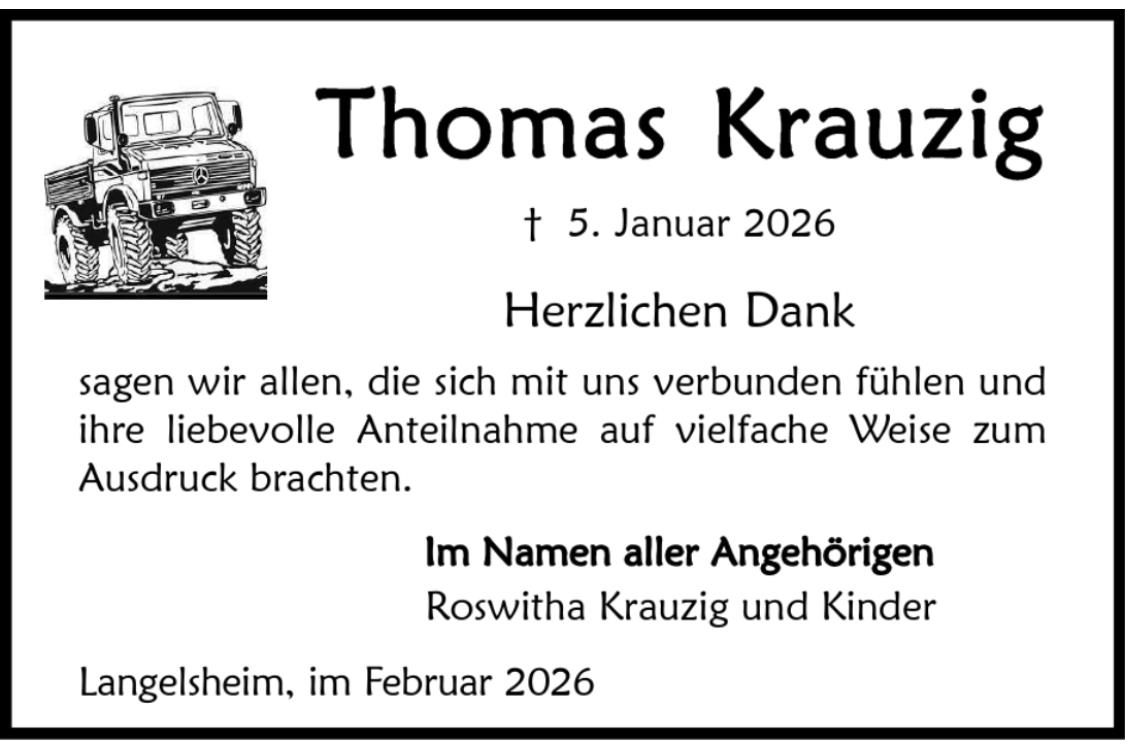 Trauerdanksagung Thomas Krauzig