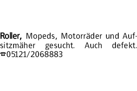Roller, Mopeds, Motorräder und Aufsitzmäher gesucht. Auch defekt. 05121/2068883