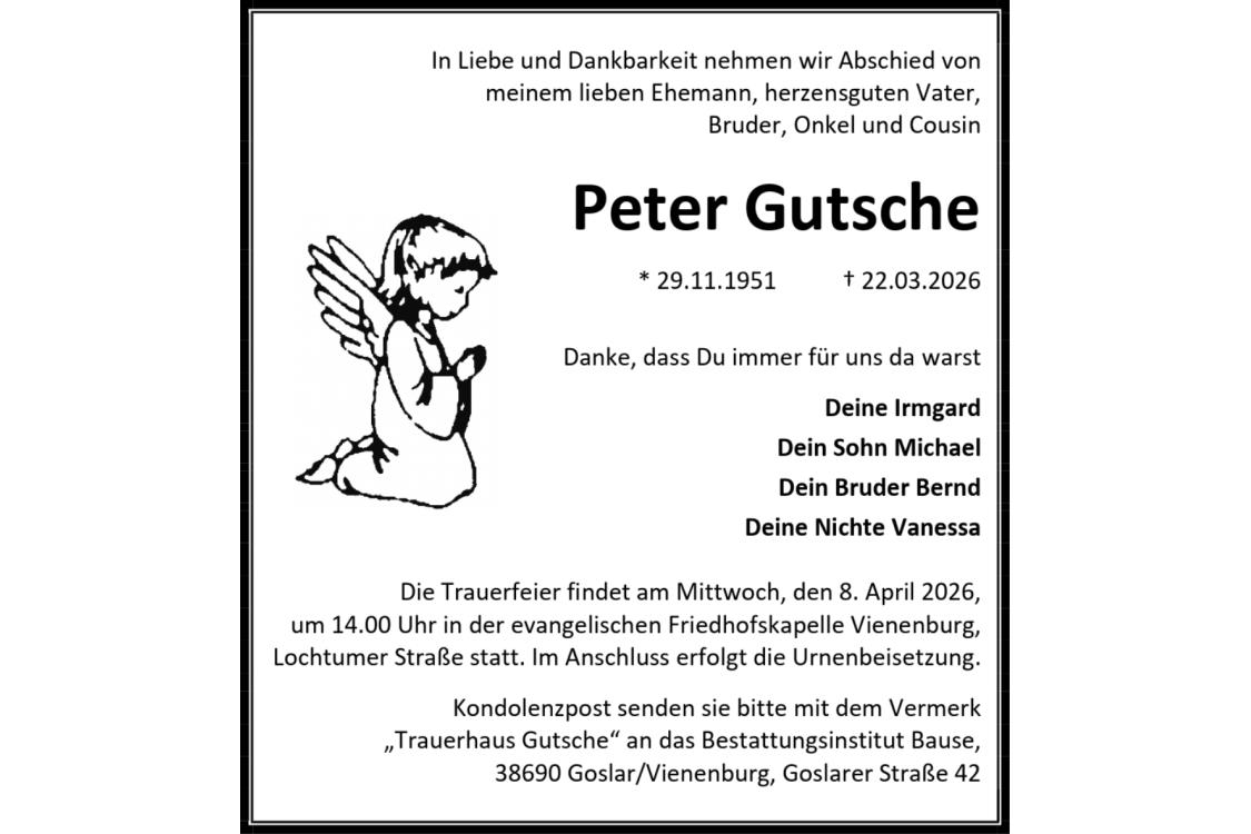 Todesanzeige Peter Gutsche