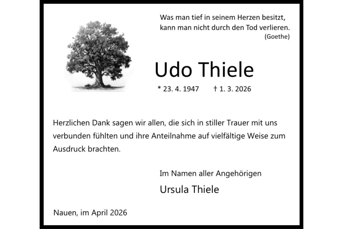 Trauerdanksagung Udo Thiele