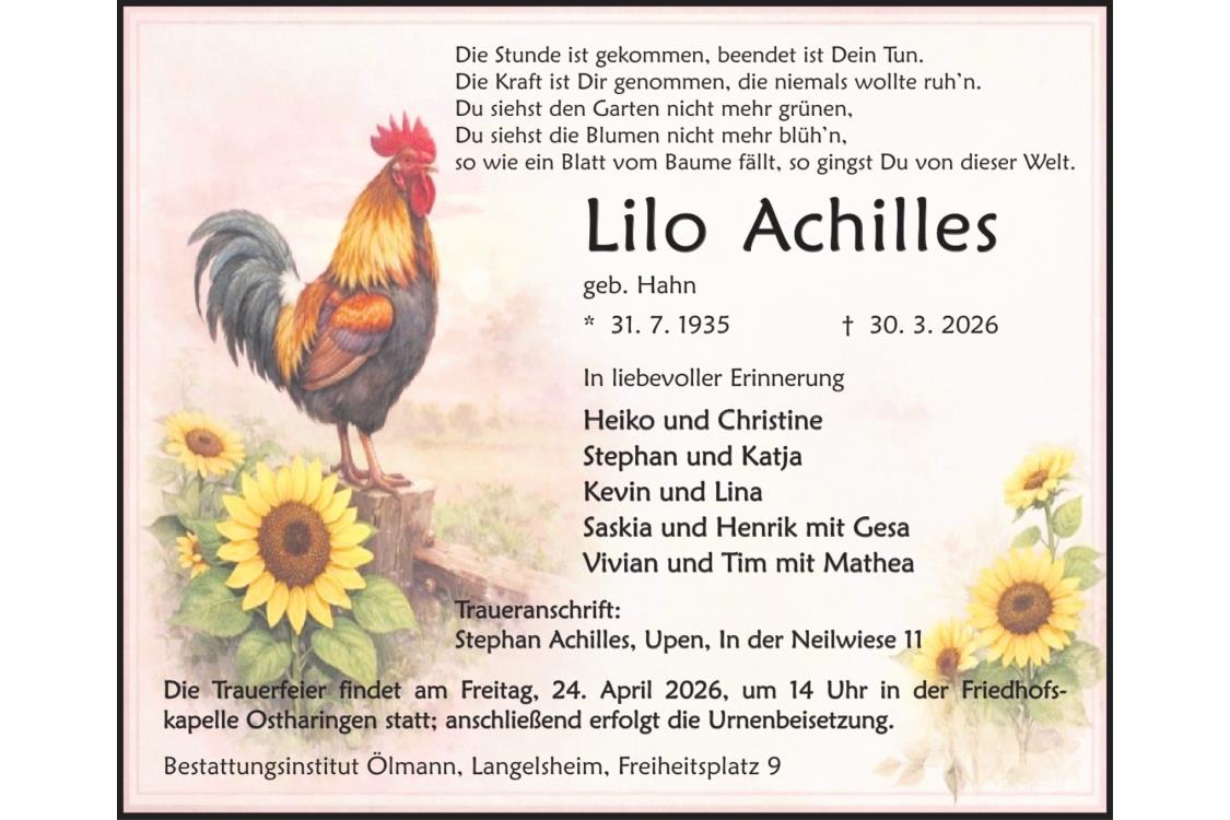 Todesanzeige Lilo Achilles