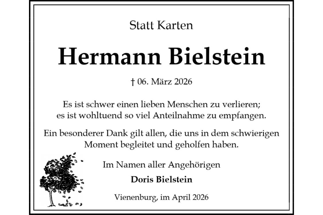 Trauerdanksagung Hermann Bielstein