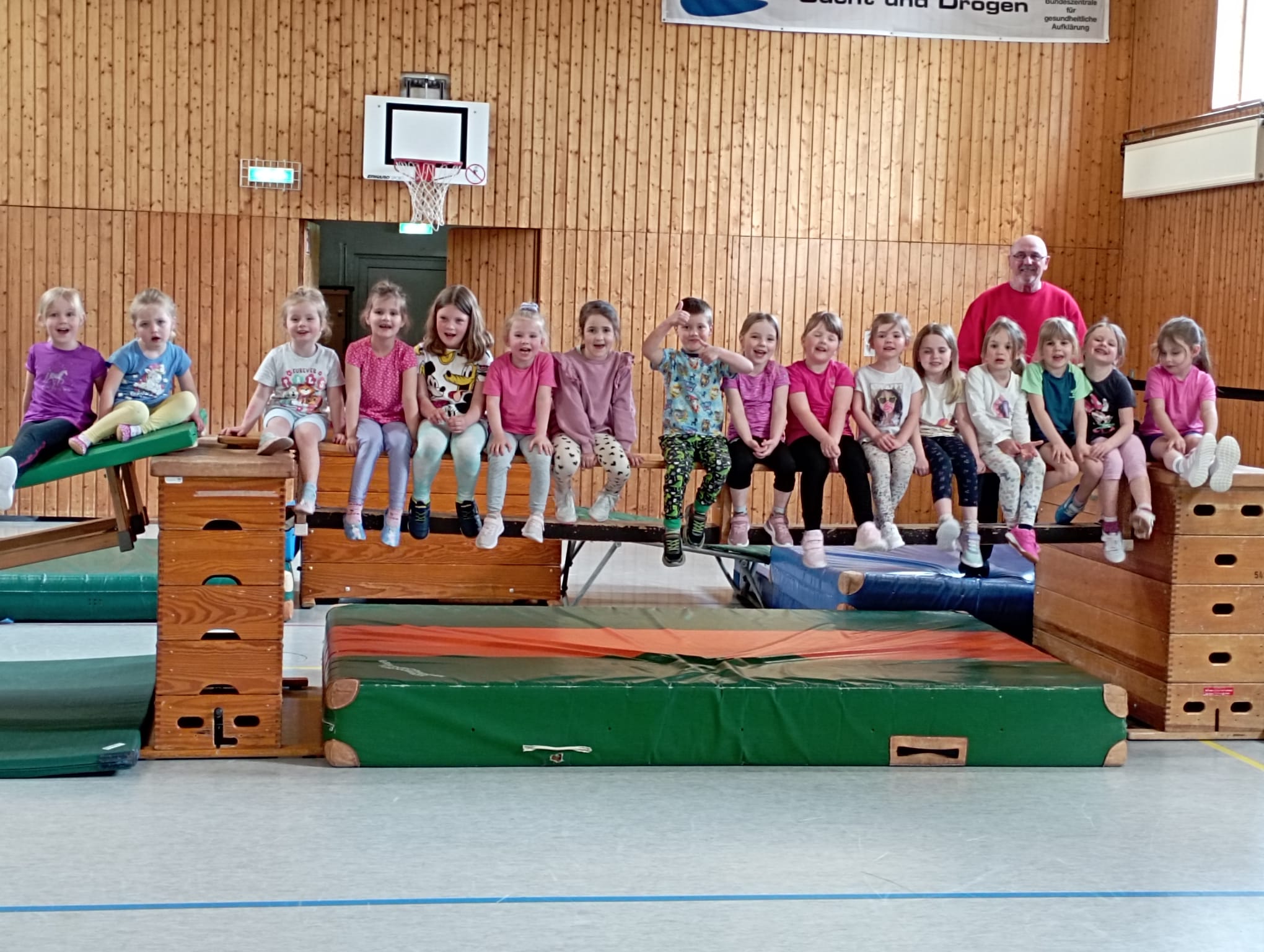 Wer dem entwächst, kann beim „Kuddel-Turnen“ mit Kurt „Kuddel“ Ross einsteigen, das sich an Kindergarten- und Grundschulkinder richtet. Hier sind Jungen und Mädchen schon getrennt unterwegs.